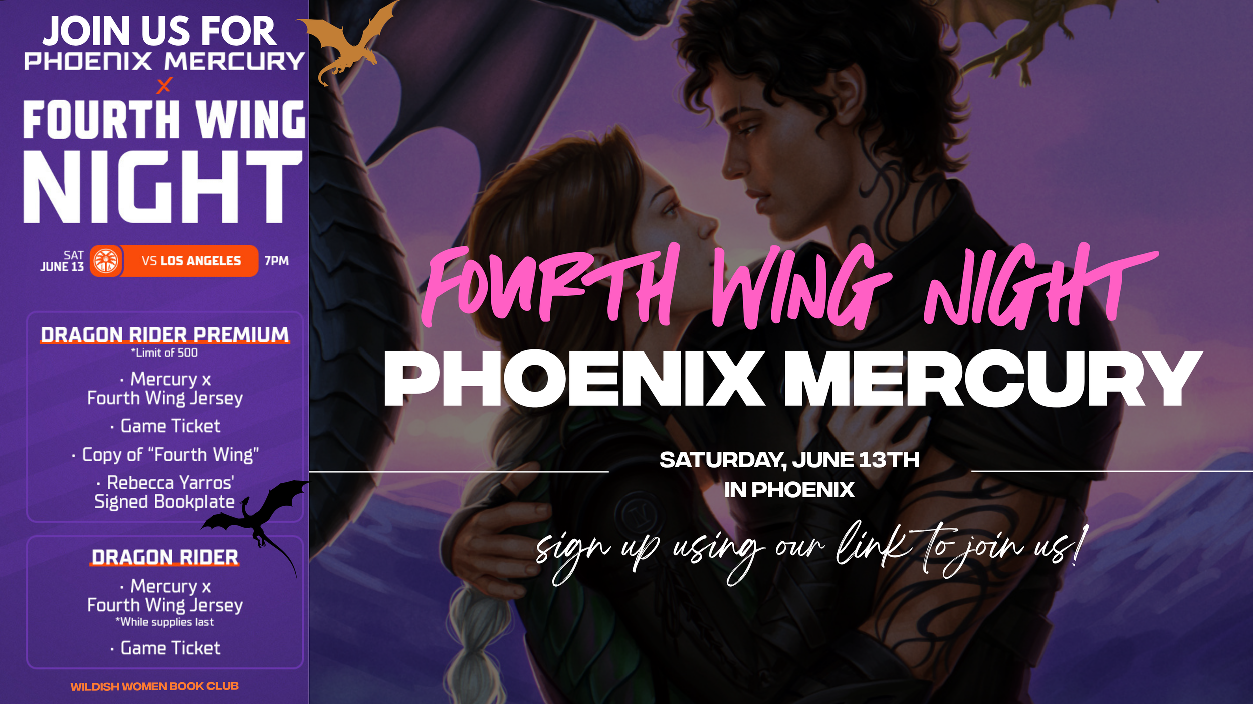 We’re officially partnering with the Phoenix Mercury for Fourth Wing Night and it’s about to be unreal. Think: dragons, jerseys, and a whole lot of bookish energy inspired by Fourth Wing by Rebecca Yarros.