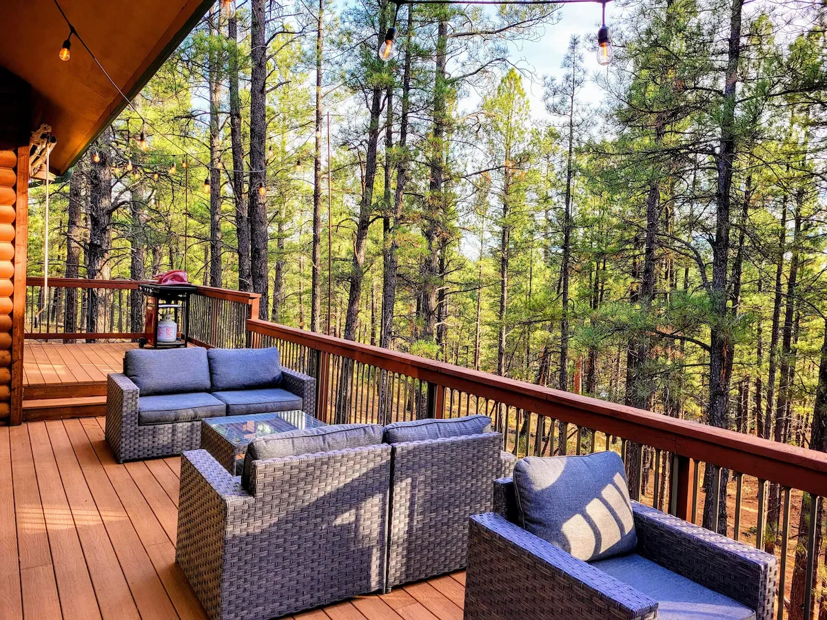 Five bedroom cabin with a fireplace and hot tub nestled in the forest and only 5 mins to downtown Flagstaff.